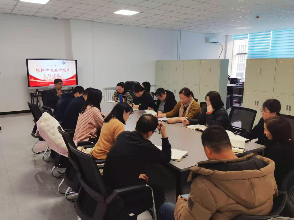 现有教学资源优势,启发在场教师们如何在日常的教学环节中具体地进行教学改革、教法创新、考试改革。他嘱咐教师们一定要运用好、总结好教学改革的经验,并将其体现到教改项目申报、教改论文写作、教学奖申报等方面,实现学生培养和教师能力提升双丰收。要求老师们聚焦“以软学软”教学改革理念,共谋数字化教学改革新生态,具体从以下几个方面展开: