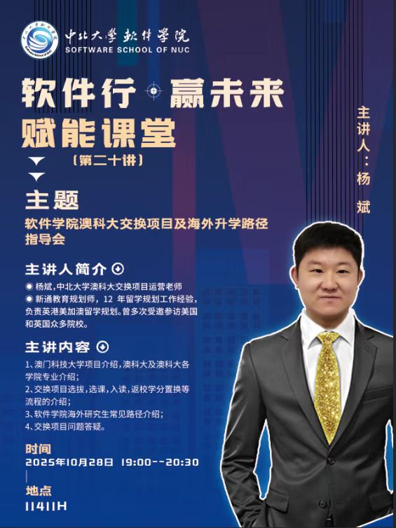 推进“国际化人才培养”的有力举措,既为学生提供了优质的国际交流机会,也为有海外升学意向的学子明确了准备方向。后续,学院将持续依托“软件行·赢未来”赋能课堂,整合校内外资源,开展更多针对性的指导活动,助力软件学子在国际舞台上实现发展目标 。