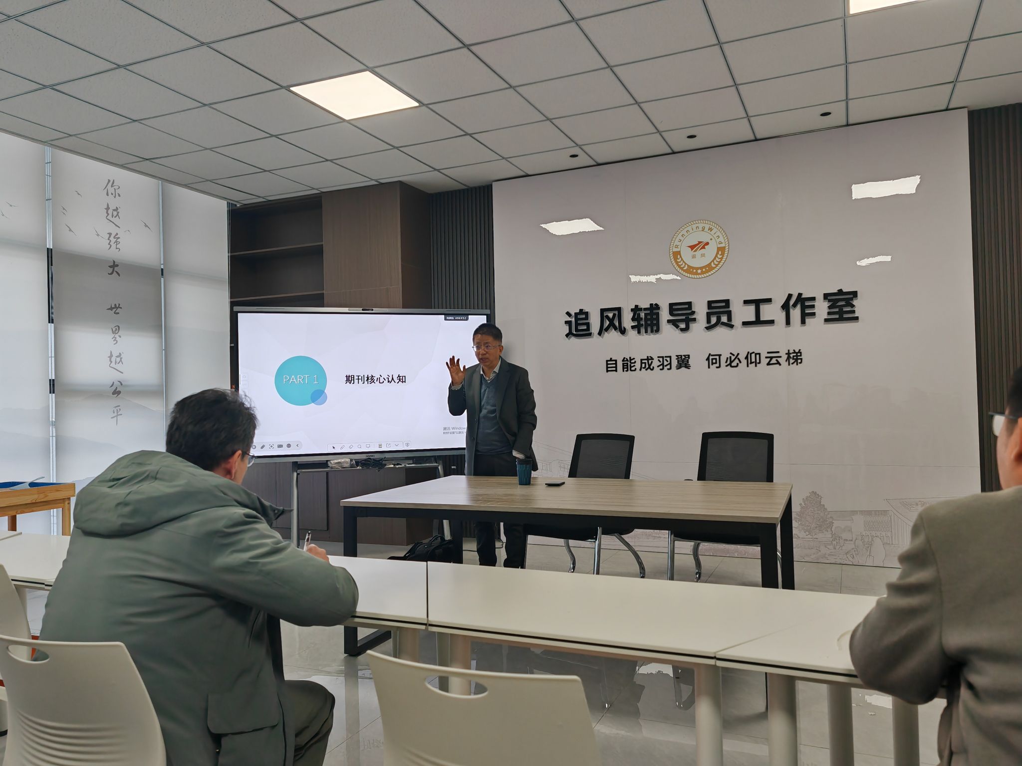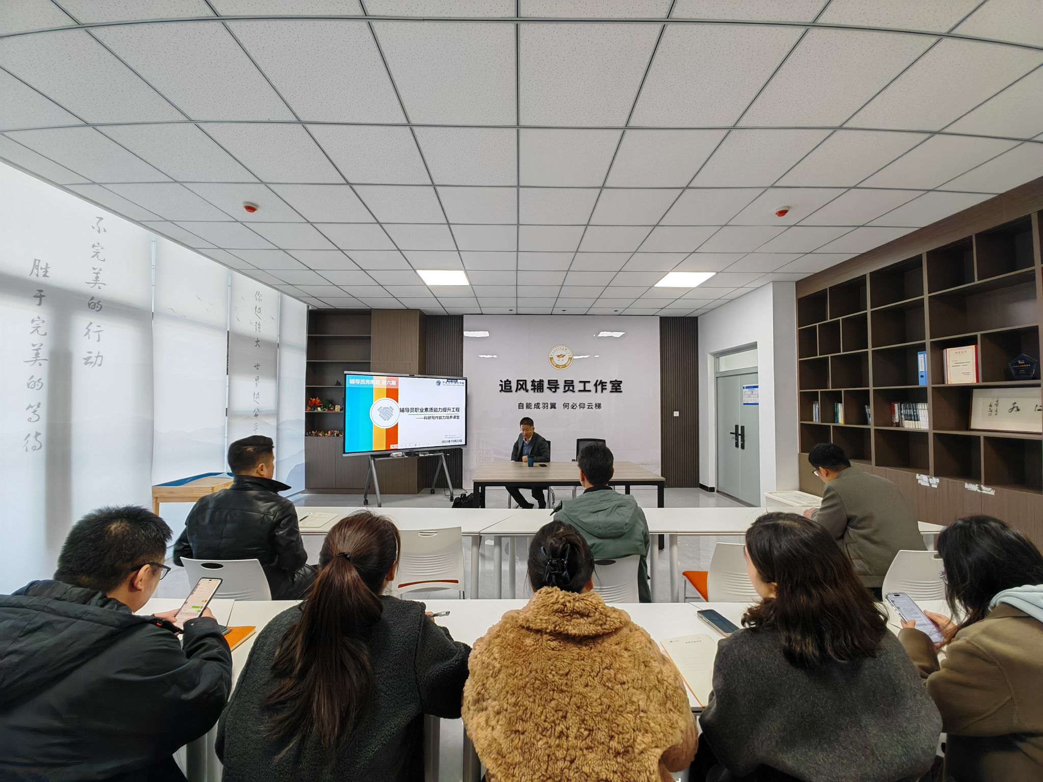 第六期“辅导员充电站”——辅导员科研写作能力提升在“追风逐梦”辅导员工作室举行。本次讲座由学院党委副书记高宏图主持,特邀院长强彦教授担任主讲。