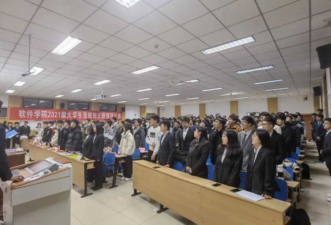 就业部部长王婕发言,强调了这场比赛有助于大学生进行自我定位,有利于增强大学生对知识的渴求,可以提升大学生职业竞争能力,是解决大学生就业难的有效途径,接着全员起立共唱共青团歌。