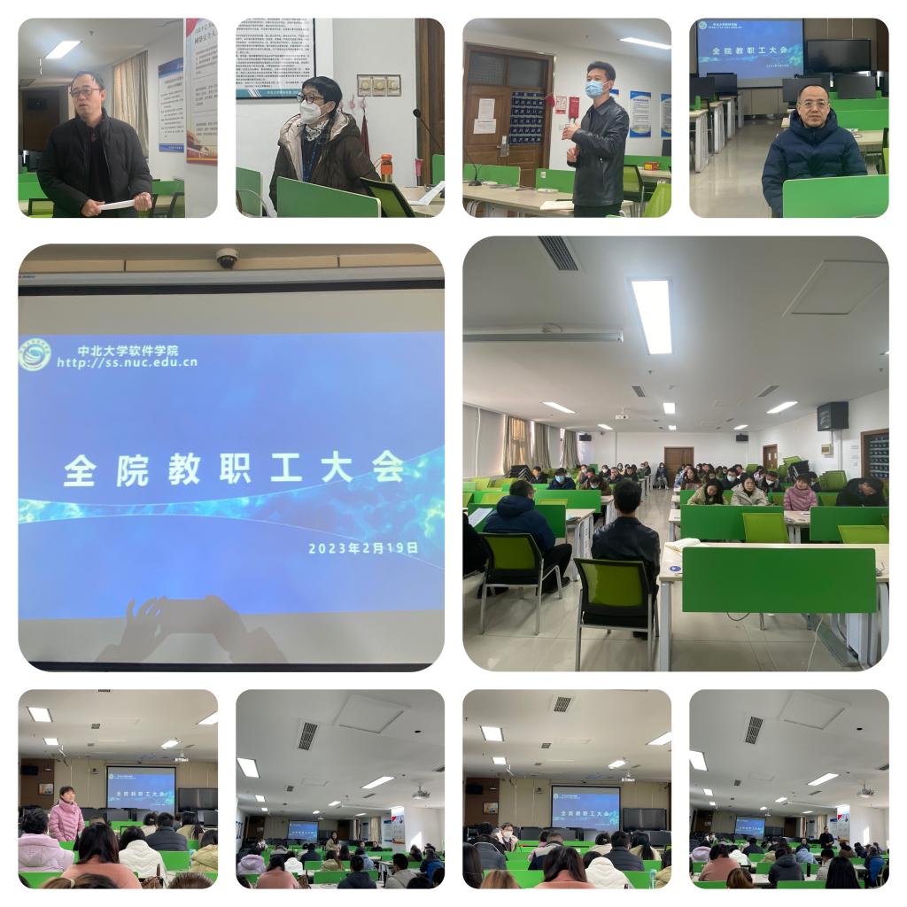 党委书记孙豫峰回顾了2022年学院各项工作在全体教职工的努力下所取得的各项成绩,向大家表示诚挚的感谢;同时明确指出了工作中存在的不足,新的学期希望大家迎难而上、查漏补缺,积极提升;重点强调了政治巡察整改、疫情防控、意识形态、安全稳定等方面的工作;希望2023年,全体软院人继续解放思想、团结一心、共克时艰、共谋发展、完善规章制度、加强队伍建设、积极申报科研项目、从严从细要求自己、拓展对外合作交流、强化学风建设、引才培育齐头并进,将学院各项工作推向新高度。