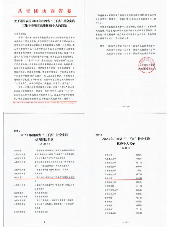 赵宇鹏同学荣获“2023年山西省‘三下乡’社会实践优秀个人”荣誉称号。
