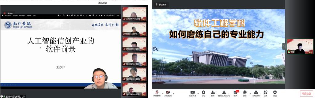 优秀学生党员代表王彦伟同志、景昱同志分别以《人工智能信创产业的软件前景》和《软件工程学科如何修炼自己的专业能力》为题,向学员们分享了软件工程专业上的前沿知识及自己的学习经验,带给学员们更好的目标规划和学习上的启发,充分发挥了学生党员的先锋模范和榜样引领作用。