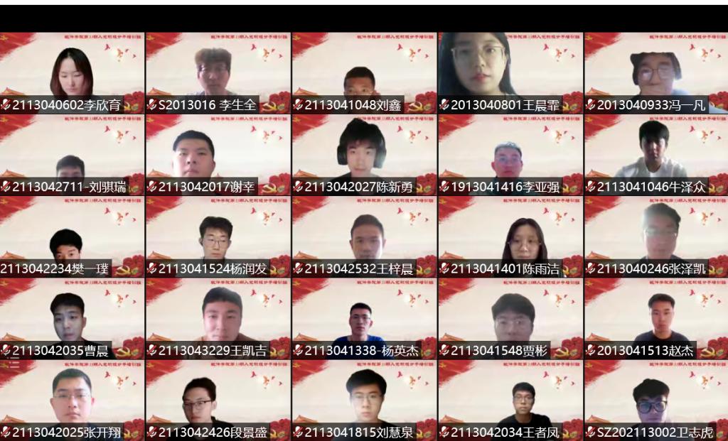 2022年春季(第33期)入党积极分子培训班通过腾讯会议线上举行,共有220名入党积极分子参加本期培训班。本期培训班采取书记讲党课、专题分享、观看党课视频、小组研讨、撰写学习体会等多种形式开展。