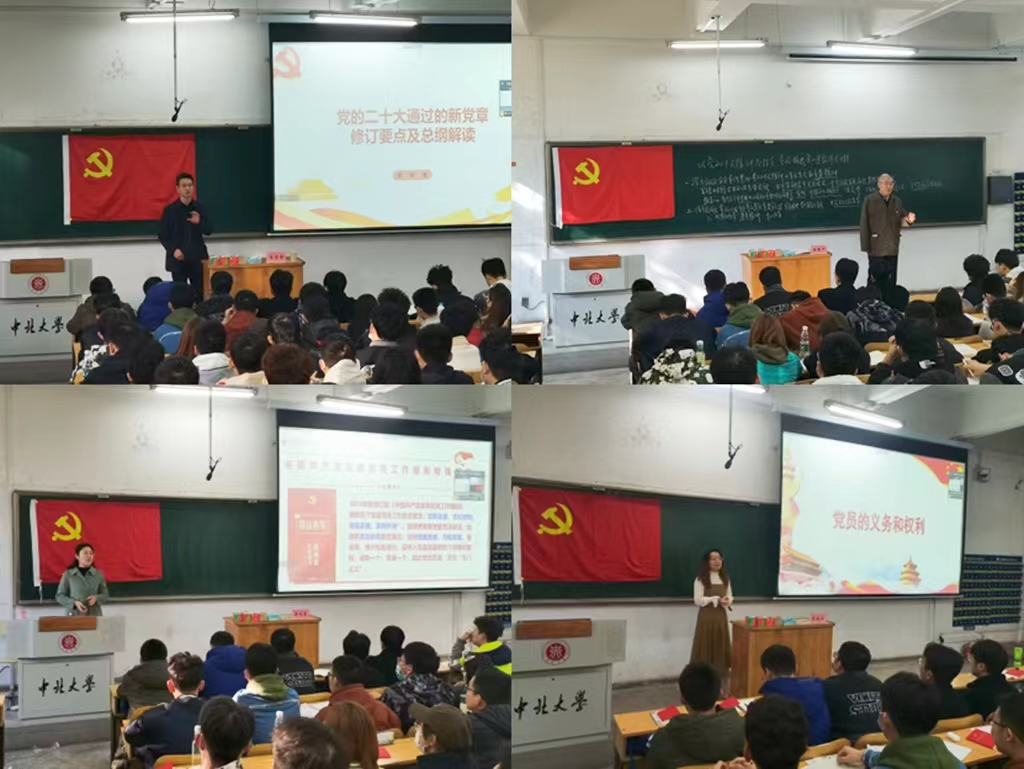 党委副书记高宏图、校关工委副主任徐继开、校党委组织部副部长常旭青等同志分别以《党的二十大报告全文解读》、《党的二十大通过的新党章修订要点及总纲解读》、《不忘初心、牢记使命——党的光辉历程》、《党的优良传统与作风》、《党的组织原则和纪律》、《党员的义务和权利》、《以党的二十大精神为指导、全面推进党的建设伟大进程》、《入党程序及应用文写作》为题进行了专题党课讲授。党课培训期间,所有学员还集中观看了《党课开讲啦》节目第3期:党的伟大成就,开展了以小组为单位进行的学习讨论。