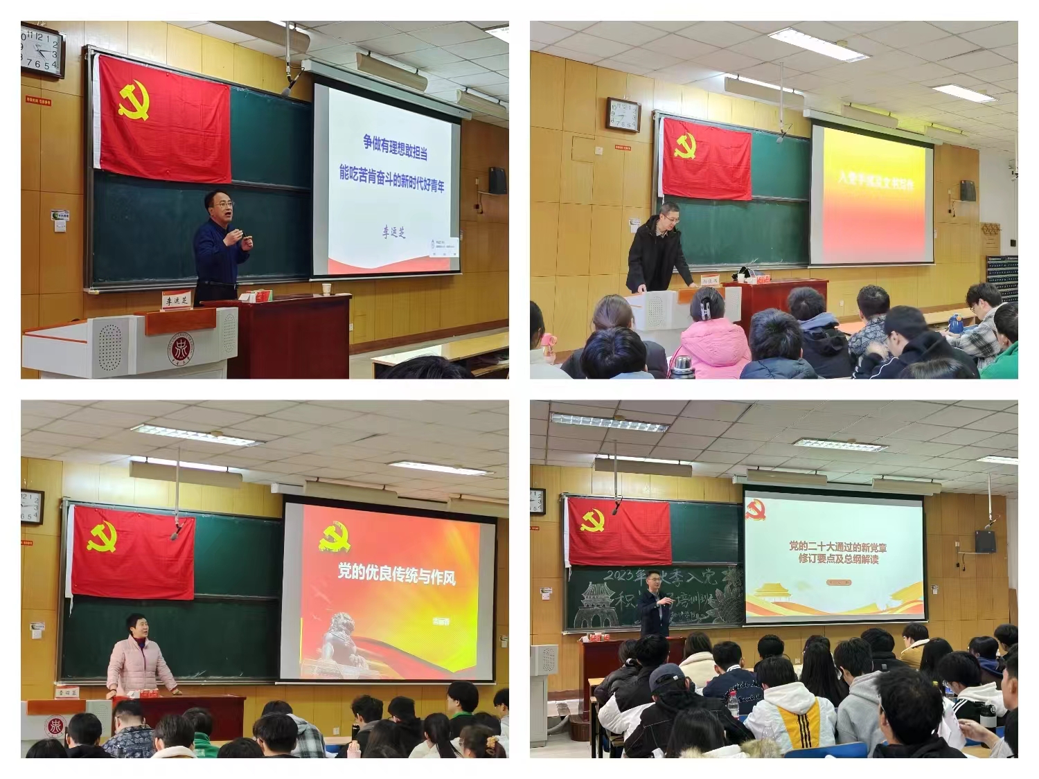 培训中,无码a片 党委书记常旭青、马克思主义学院党委书记段义权、信息与通信工程学院党委书记曹凤才、材料科学与工程学院党委书记廖海洪、原能源与动力工程学院党委书记李运芝、人文社会科学学院党委书记孙俊伟、党委宣传部老师雷丽蓉、无码a片 党委副书记兼副院长高宏图分别以《正确认识党员权利和义务》《党的指导思想》《党的光辉历程》《党的组织原则和纪律》《争做有理想敢担当能吃苦肯奋斗的新时代好青年》《入党手续及文书写作》《党的优良传统与作风》《党的二十大通过的新党章修订要点及总纲解读》为题进行了专题党课讲授。老师们的课程充实而深刻,极具思想性。通过展示丰富的历史资料、详实的数据和生动的案例,结合党的历史与新使命,从多个维度深入阐述了党的光辉历程、伟大贡献和新时代责任;从他们的工作经验、人生阅历中,诠释了党课培训的重要意义,为广大学员带来了一场场深入解析。同时老师们对入党积极分子提出的问题作出了细心、严谨、耐心的解答,让学员们受益匪浅。