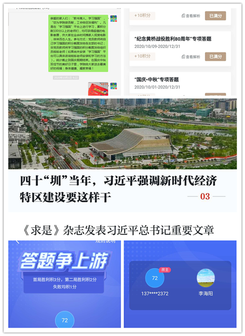 学院教工们积极参加工会组织的本次活动, “国庆•中秋”、“第三届数字中国建设峰会”、“学习贯彻习近平总书记在深圳经济特区建立40周年庆祝大会上的讲话精神”专项答题、新添加的“争上游答题”、“双人对战”更提升了老师们学习参与的积极性。全院形成了比学赶帮超的浓厚的学习氛围。大家都反映通过学习强国的学习,增强了理论素养,加强了对时事政策的了解,“学习强国”充实了每天的学习和工作。
