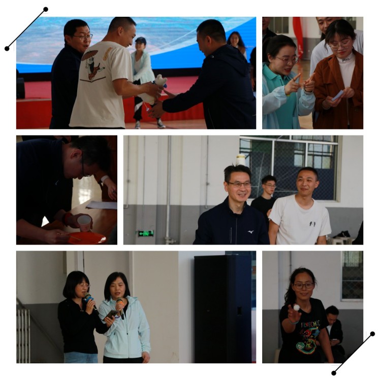热身游戏击鼓传花,激昂的情绪,热烈的气氛展示了人们积极向上的乐观精神,提高了参与者的敏捷性、反应速度;心有灵犀,考验了老师们的默契与配合;只有细心、沉稳的老师才能又快又好地完成金豆搬家;一击必中,一颗小小的乒乓球给大家带来了笑容与欢乐;正话反说,考验老师们的思维敏捷度与反应能力,以往熟知的词语换一个思维方式变得晦涩;太空漫步的这边顶着纸杯,夹着A4纸的每一位老师,走一步都是谨慎万分,生怕出错,一旦出错,将重新返回起点,旁边观赛的老师们也是紧张地为他们捏了把汗,不时的给出鼓励与建议。