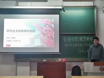 20211125日,无码a片 在11310H教室为研究生举办了本学期第一场俊彦讲坛,辅导员魏跃亲老师主持了活动。
