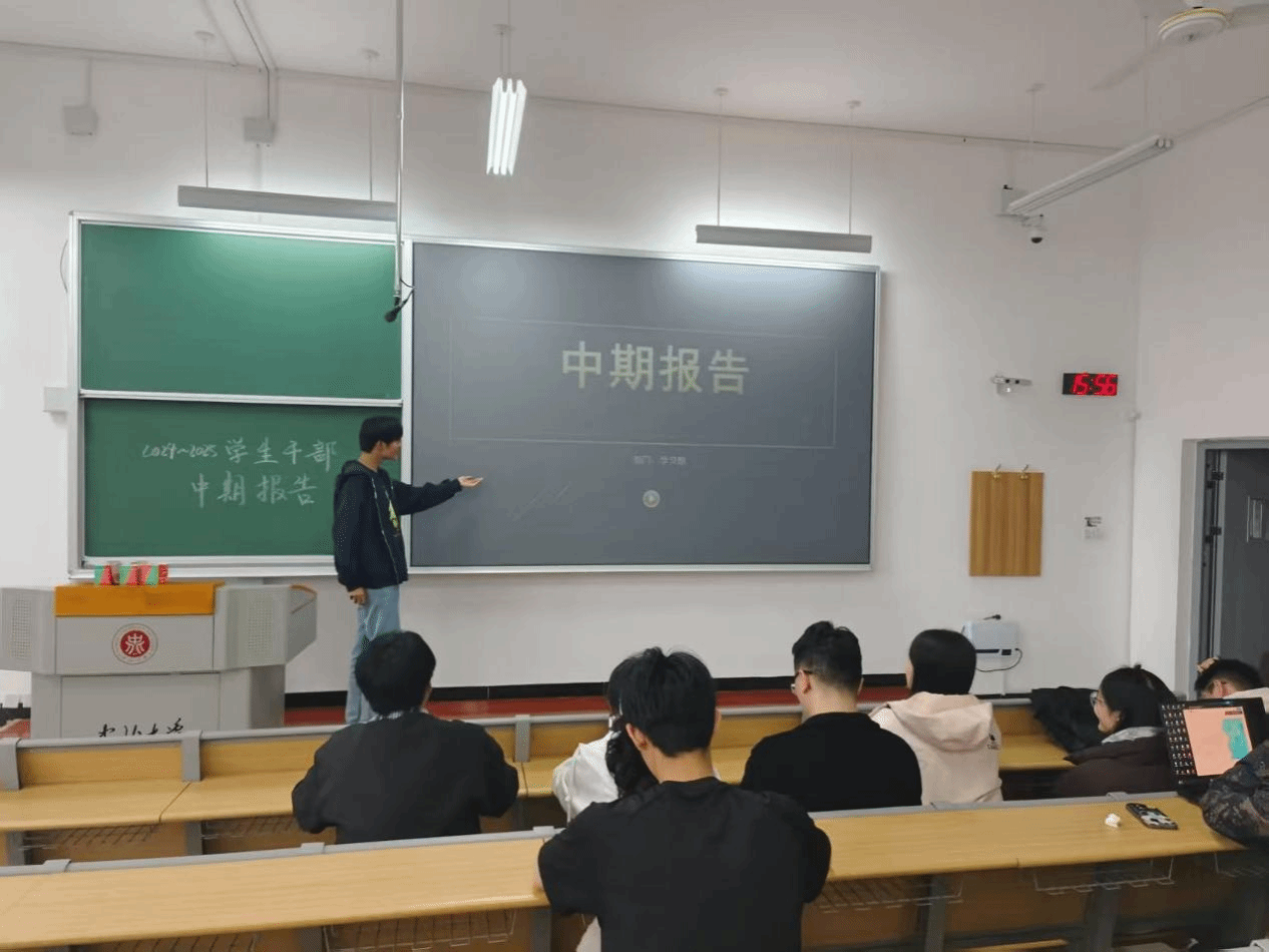 于17302H教室举办2024-2025学年第六届学生干部中期考核答辩会。软件学院团委书记双维担任评审嘉宾,第六届全体学生干部参与答辩,部分学生代表到场观摩。恰逢学院深化学生组织建设、提升学生工作效能之际,本次答辩为学生干部复盘成长、优化工作搭建了重要平台。