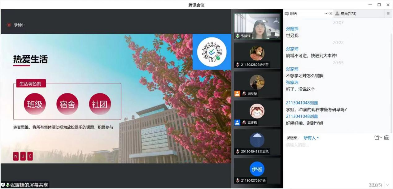 团委学生会于本月筹办了“榜样的力量”系列主题分享活动。活动从应届毕业生的升学和就业两方面着手,分别开展了“就业篇”“保研篇”“考研篇”3场主题分享活动,活动特邀优秀毕业生裴端、张健宁、王滢、景昱、高正格和张耀铎为低年级学弟学妹们分享成长经验、答疑解惑,此次活动累计吸引一千余名同学参与聆听、互动。