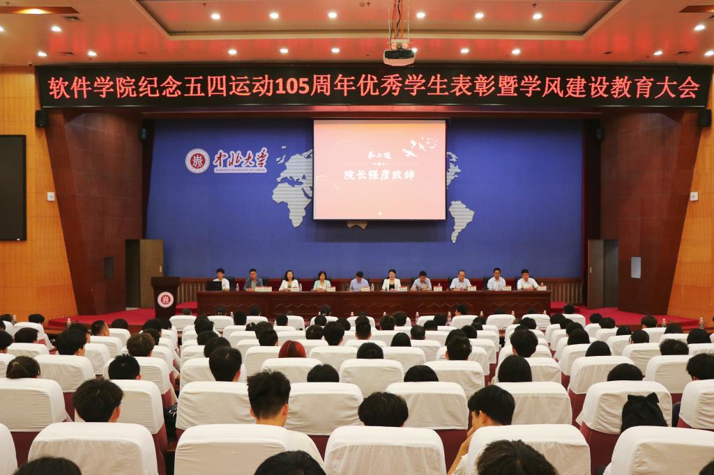纪念五四运动105周年优秀学生表彰暨学风建设教育大会在图书馆五层学术报告厅隆重举办。学院党委书记常旭青、院长强彦、党委副书记高宏图、教学副院长李众、系主任马巧梅、李华玲、付东来、学生科科长栾飞、团委书记双维及全体辅导员、班主任、教师代表出席会议。大会由学院团委书记双维主持。