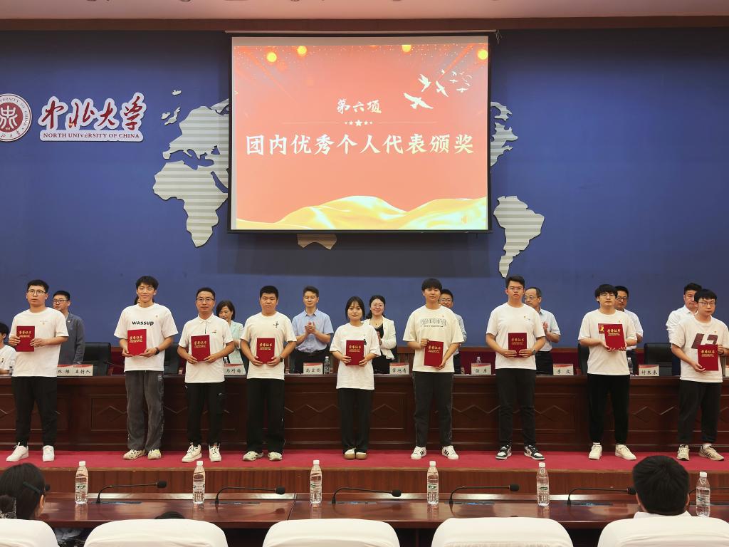 2023年度团内先进集体和优秀个人的决定》,主席台领导为团内先进集体和优秀个人代表颁发荣誉证书。五四红旗团支部21130401团支部团支书郭心语从支部风采、青春同行;立德树人、夯实基础;科创赋能、武装头脑;青春筑梦、践行担当四个方面分享了团支部的奋斗历程。共青团干部标兵代表何怡翰分享了自己作为共青团干部的工作心得和体会,他号召同学们要坚定理想信念,树立远大志向;要勤奋学习,勇于创新;要主动适应时代要求,积极融入社会。