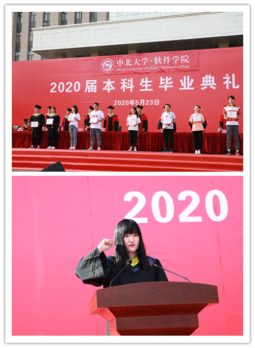 “疫情无情人有情,齐心助力传喜报”,这是学院2020届毕业生向学院敬赠的锦旗,也是所有毕业生对学院共同的心声;国家奖学金获得者崔炜楠同学带领毕业生进行毕业宣誓“我们成长于中北,我们成就未来,承载着太行精神,担负起时代使命……”铿锵誓言,响彻校园。