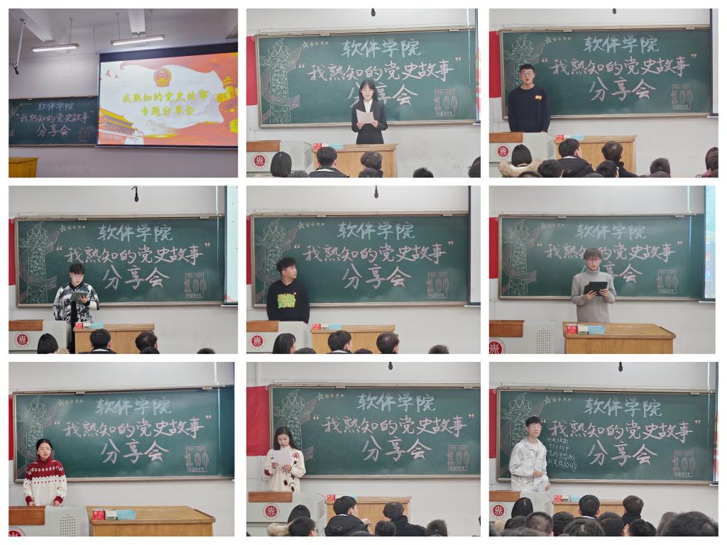 11月18日19点、11月23日16点,分享会分别在10204H教室、10101H教室举办,由李姣蓉、张译丹同学主持,先后共有十五名同学分享了自己熟知的党史故事。