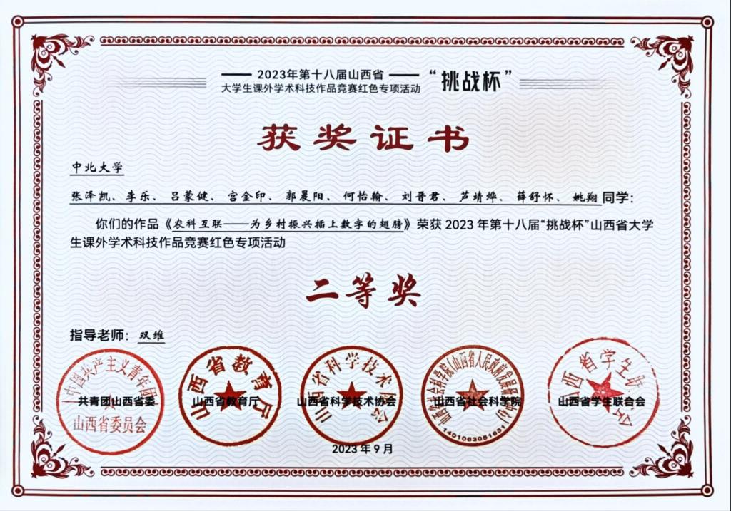 赵宇鹏同学荣获“2023年山西省‘三下乡’社会实践优秀个人”荣誉称号。