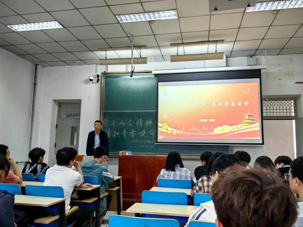 顾宁部长在班会上还围绕“中国共产党全国代表大会举办时间和举办条件”“中国共产党第一次全国人民代表大会回顾”“大会的几届几中全会的概念”“会议议题”“全国两会是哪两会”“两会的职能”等内容向同学们进行了解读。他还勉励同学们要保持对学习的热情和对生活的热爱,密切关注国家政策和行业发展前景,启发同学们合理规划自身学习、生活及未来职业发展路径,不断提升自己的综合素质,以实际行动践行“两会”精神。