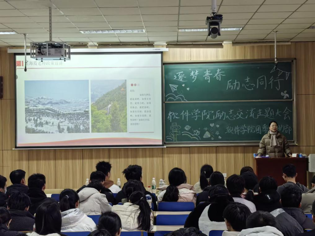 第八届励志思想交流大会——逐梦青春 励志同行于09402H举行。院党委副书记高宏图、辅导员盖海霞、辅导员魏源慧参加会议,资助部全体成员及学院所有年级家庭经济困难学生代表共300余名同学参会。