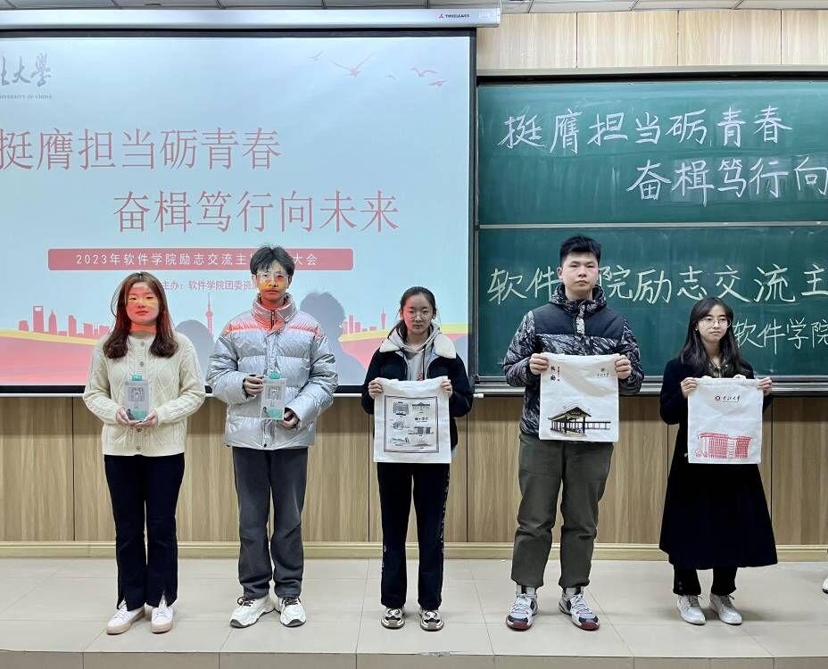 勤工助学队长段景盛同学的发言,他表示在被国家资助后,在日常学习生活中他会默默地通过个人点滴力量将这份精神回馈给需要帮助的人;其次,大会通过“有奖问答”、萨克斯演奏、“你画我猜”等活动,在欢笑中普及宣传资助政策相关知识,并邀请家庭经济困难生中保研生赵敏同学、优秀奖助学金获得者李飞鸿同学进行大学规划、学习方法和勤工助学的经验分享。