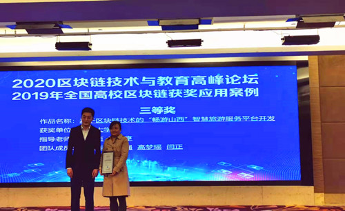 参赛的项目“基于区块链技术的畅游山西智慧旅游平台开发”荣获三等奖,是获得此类奖项的山西省首家家高校。本项目基于区块链、物联网、数据挖掘以及云计算技术开发了“畅游山西”智慧旅游服务平台。该平台可以降低旅游出行成本与风险、杜绝临时涨价与宰客、解决交通拥堵等行业痛点问题。平台以融合的通信与信息技术为基础,以游客互动体验为中心,以一体化的行业信息管理为保障,以激励产业创新、促进产业结构升级为特色,服务于公众、企业、政府等的面向未来的全新的旅游形态。