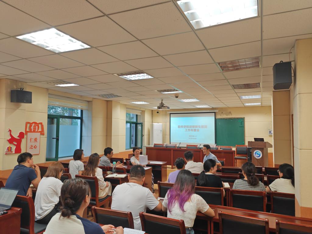 在院楼122召开2023级新生入学报到工作部署会,院党委书记常旭青主持会议,院副党委书记高宏图及全体辅导员参会。